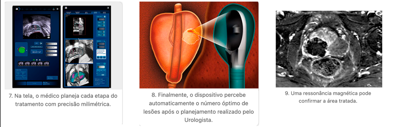 Figura 2: Esquema ilustrativo das etapas do tratamento focal com HIFU FocalONE.