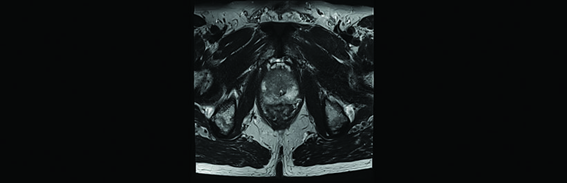 No caso do paciente abaixo, o histórico médico apresentou uma biópsia prévia negativa. Porém, devido ao elevado nível de PSA encontrado, foi feita uma ressonância magnética multiparamétrica, ou mpMRI (Fig. 1). O exame mostra uma lesão circunscrita suspeita no lado apical direito da próstata.