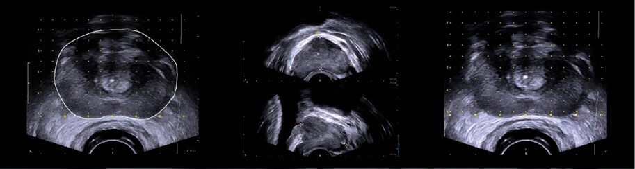 Com a imagem biplanar é possível verificar a posição e, principalmente, a profundidade da agulha no momento da biópsia da próstata.