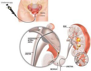 - Ureteroscopia: procedimento minimamente invasivo realizado através da passagem de endoscópio pela uretra da paciente. Atualmente considerado padrão ouro no tratamento da litíase em gestantes, por se tratar de método seguro e eficaz para remoção de cálculos.