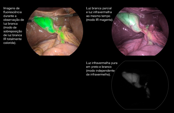 Hoje, o uso da fluorescência vem sendo incorporado para cada vez mais aplicações cirúrgicas. O uso da imagem por fluorescência (IR), por exemplo, facilita a identificação das estruturas biliares, reduzindo a incidência de lesões do ducto biliar em comparação com a luz branca.