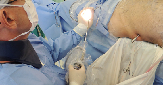 O posicionamento do paciente em supina completa se mostra cada vez mais consolidado. A “posição de Melchert”, nossa contribuição ao demonstrarmos que não são necessários coxins, acomodando o paciente em decúbito dorsal total, representa um avanço técnico que associa maior segurança e conforto para a anestesia, acesso simultâneo percutâneo e ureteroscópico e baixa infusão de líquidos.