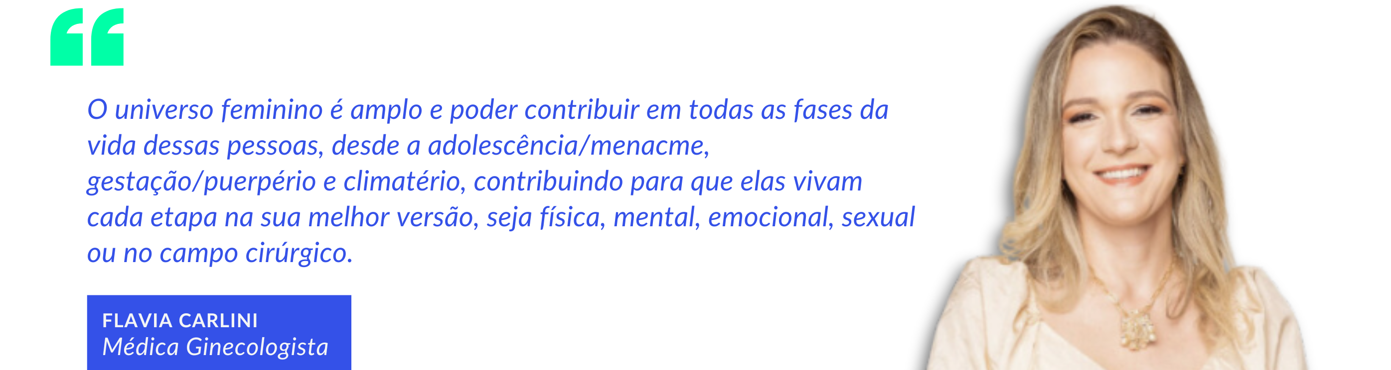 Já Flávia Carlini, Médica ginecologista especialista em endoscopia ginecologica, endometriose e robótica pela Febrasgo, Sobracil e Intuitive, e Presidente da Sobracil/MS, compartilha que sempre gostou de conversar com as mulheres, entender os seus problemas e ajudar a solucioná-los.