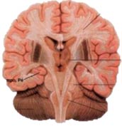 Imagem de ultrassom do cérebro em corte transverso com alta resolução
