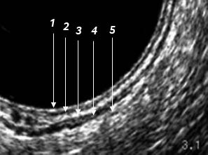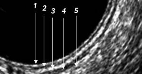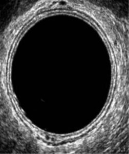 O ultrassom endorretal deve ser realizado com transdutor de alta resolução e gerar imagens de 360° para que o estudo seja circunferencial e sejam observadas com nitidez as cinco camadas da parede do reto: 1.Mucosa; 2.Muscular da mucosa; 3.Submucosa; 4.Muscular própria; 5.Gordura peri-retal.