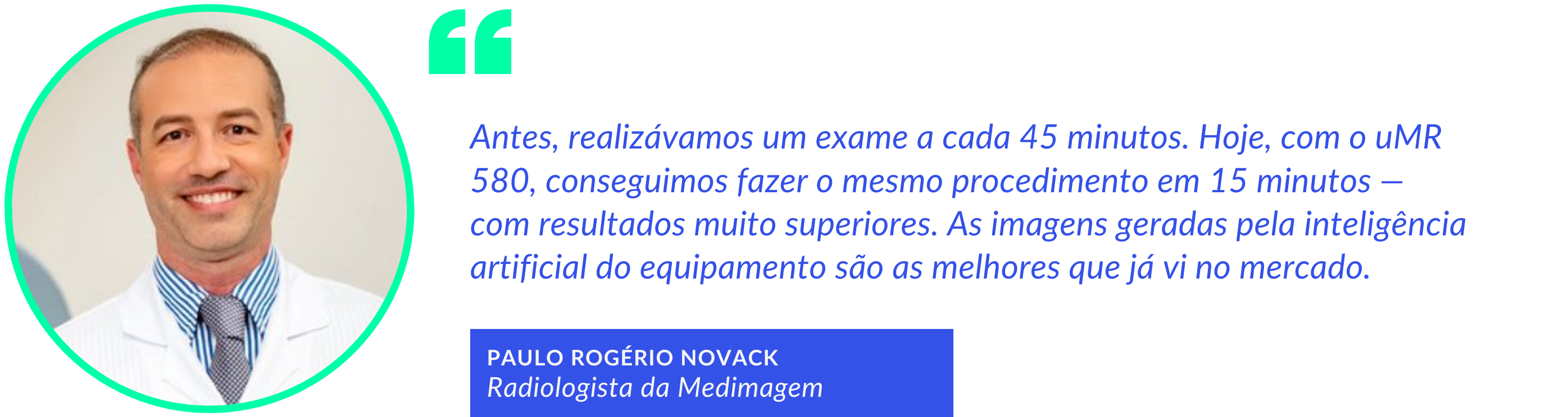 Segundo o Dr. Paulo Novack, radiologista da Medimagem, o tempo médio dos procedimentos foi reduzido em 66%, com melhora significativa na qualidade das imagens: