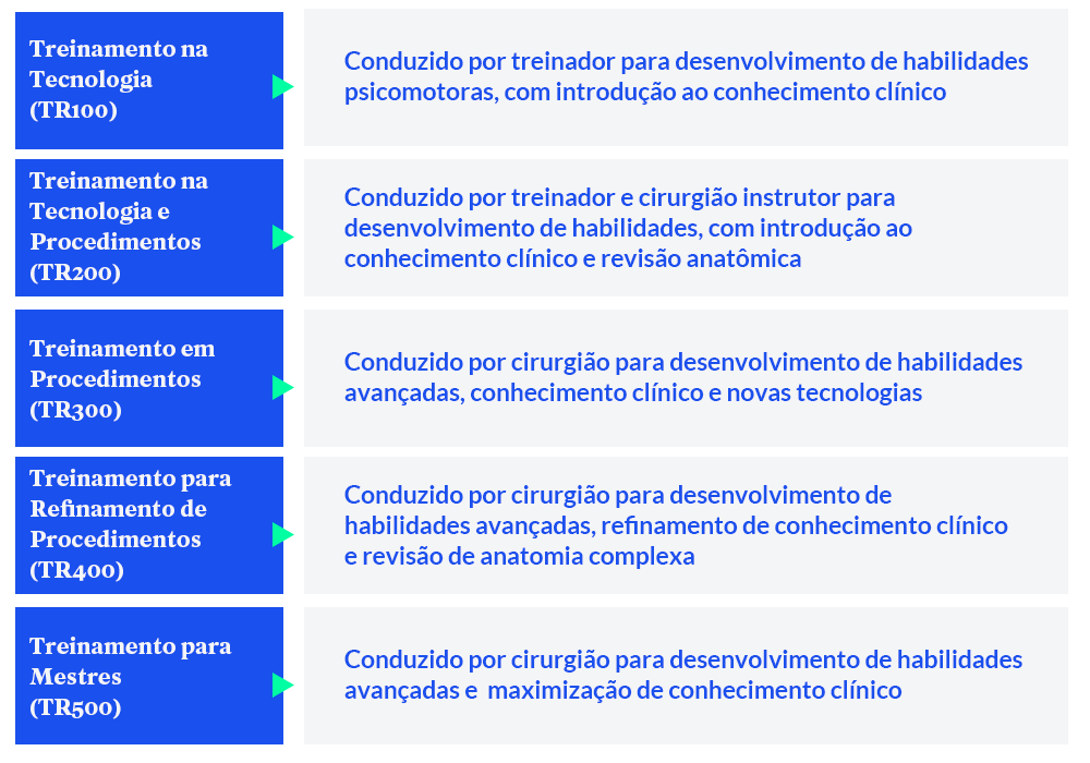Treinamento para cirurgiões, voltado para as especialidades consideradas avançadas/complexas. Este treinamento combina aprofundamento na tecnologia com informações clínicas, realizado por treinadores certificados pela Intuitive e experientes cirurgiões da Vinci. (Disponível no Brasil)