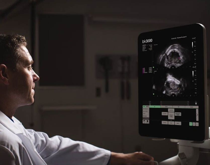A realização de biópsias direcionadas é mais precisa do que nunca, graças ao transdutor triplano exclusivo do bk3000. Seus recursos de imagem simultânea biplano permitem que você visualize a próstata do ápice ao colo da bexiga e facilmente avalie todas as regiões da próstata com maior confiança e menos desconforto do paciente.